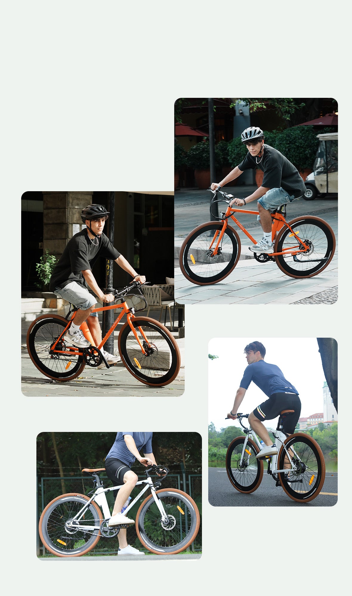 Le moteur de 250W avec un couple de 40Nm offre une vitesse de pointe de 25km/h et une traction fiable avec peu d'entretien.Pneus de route 700C×38C