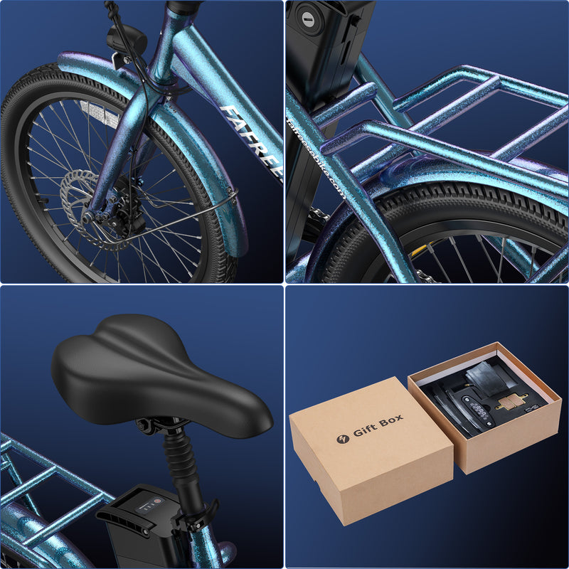 1 x boîte cadeau (comprend tube intérieur, 2*capsules de soupape, 2*réflecteurs de roue, 2*garnitures de frein, 1*chaîne de clés,1*outil multifonctionnel)