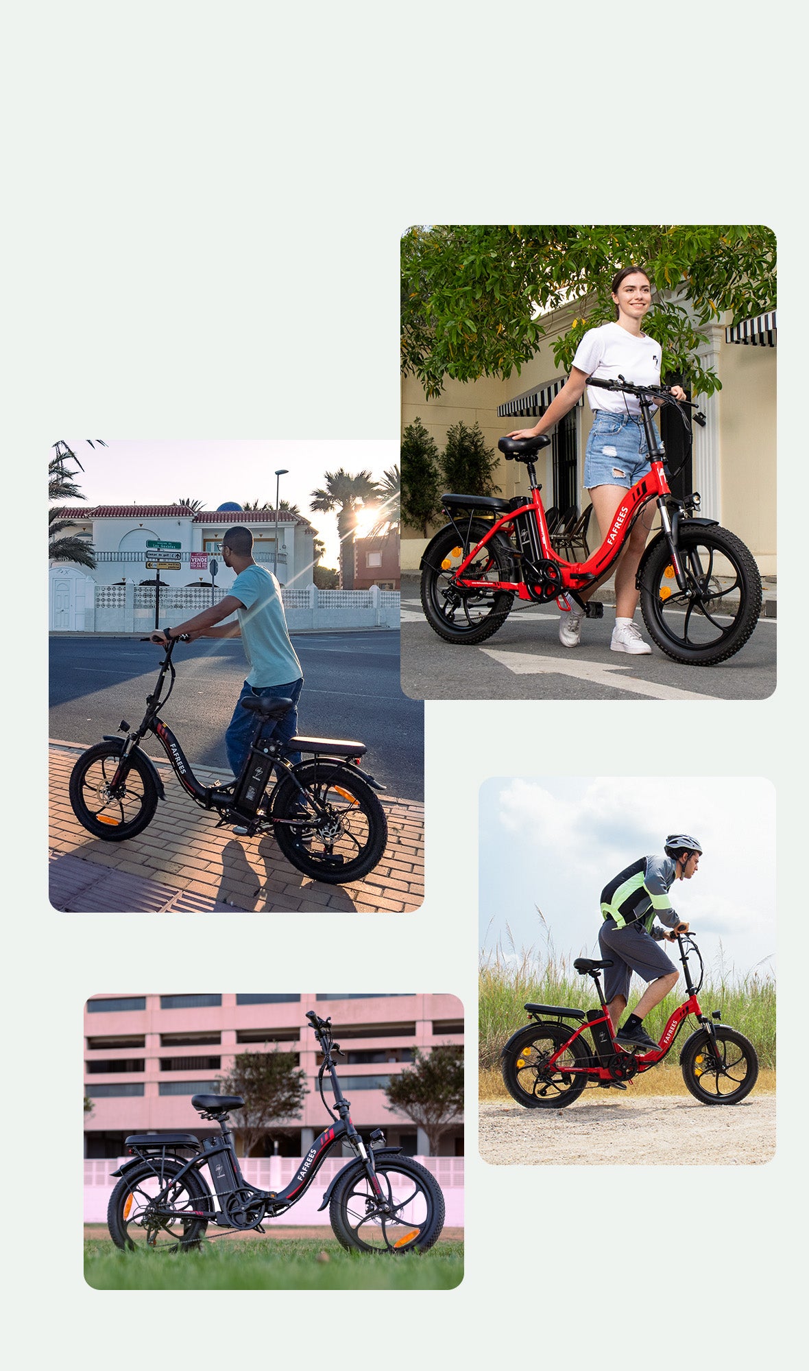 Efficace et polyvalent, le F20 est doté d'un cadre step-through pliable, de pneus larges de 3,0 pouces et d'une batterie de qualité automobile de 16 Ah. Parfait pour les randonnées pratiques et économiques avec une plus grande autonomie.