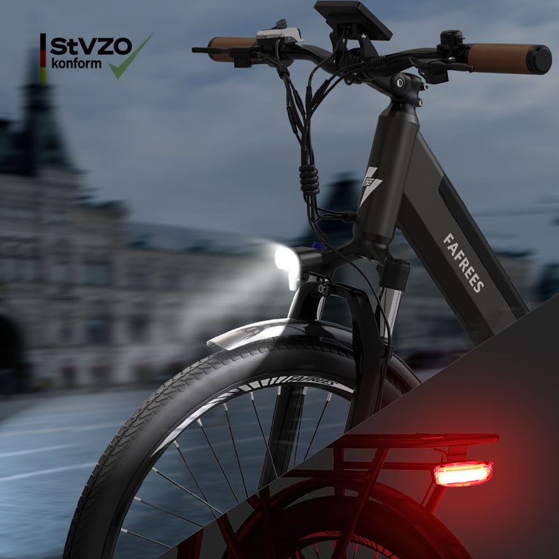 Éclairage LED : Le feu avant et le feu de freinage arrière conformes à la norme StVZO améliorent la visibilité et la sécurité dans toutes les conditions.