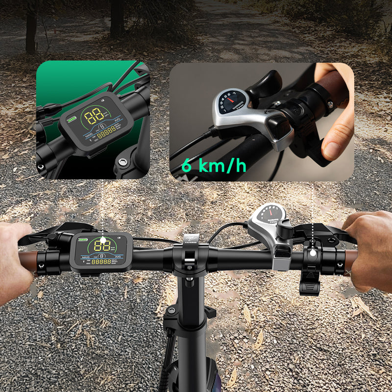 Waterproof LCD Display: Color, backlit screen with speed, battery, and gear info—plus walk assist for added support.