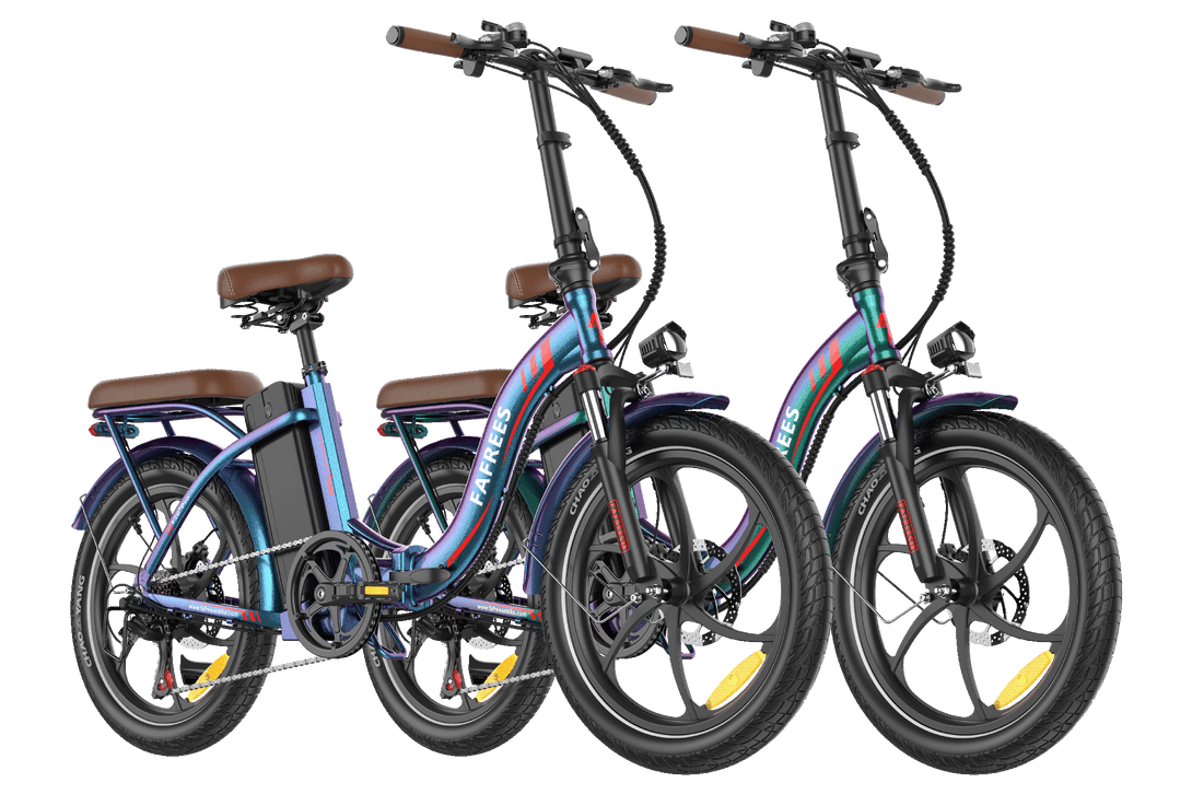 The F20+ Pro features a newly upgraded, integrated aluminum alloy frame that ensures strength and durability while remaining lightweight. Its compact, foldable design makes it easy to store and transport. Plus, with a stunning tri-color chameleon finish, the frame shifts between green, purple, and blue, adding a touch of personality and style to your ride.